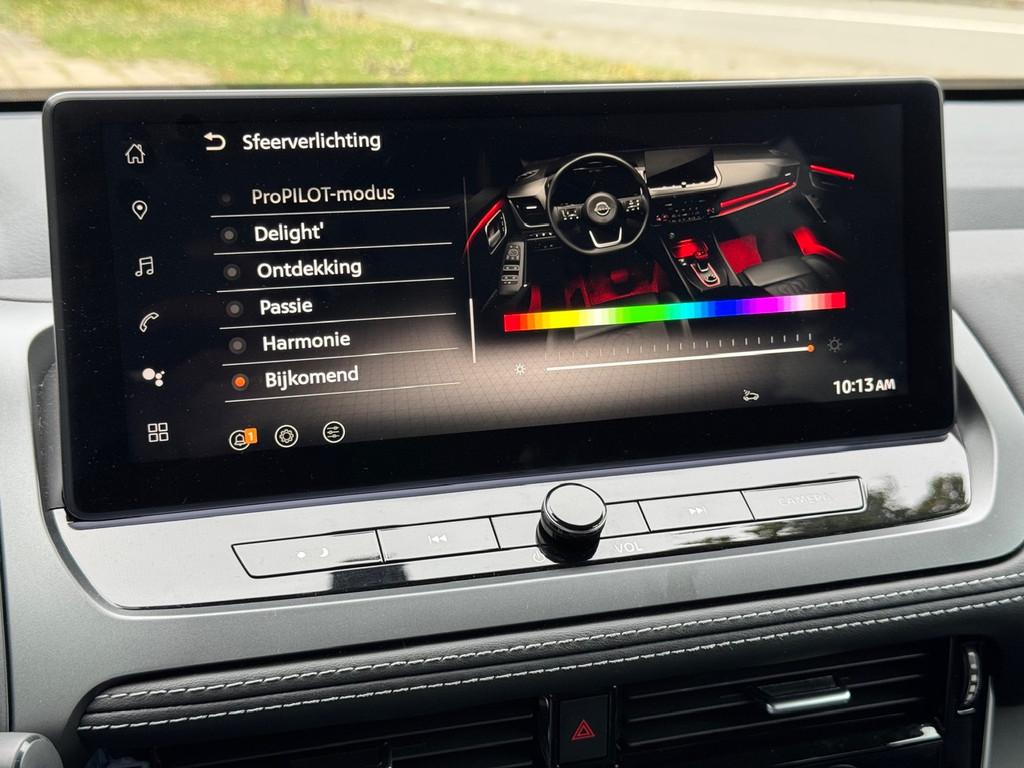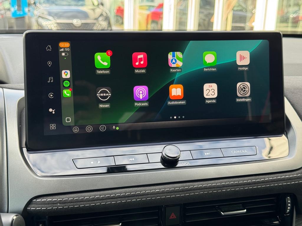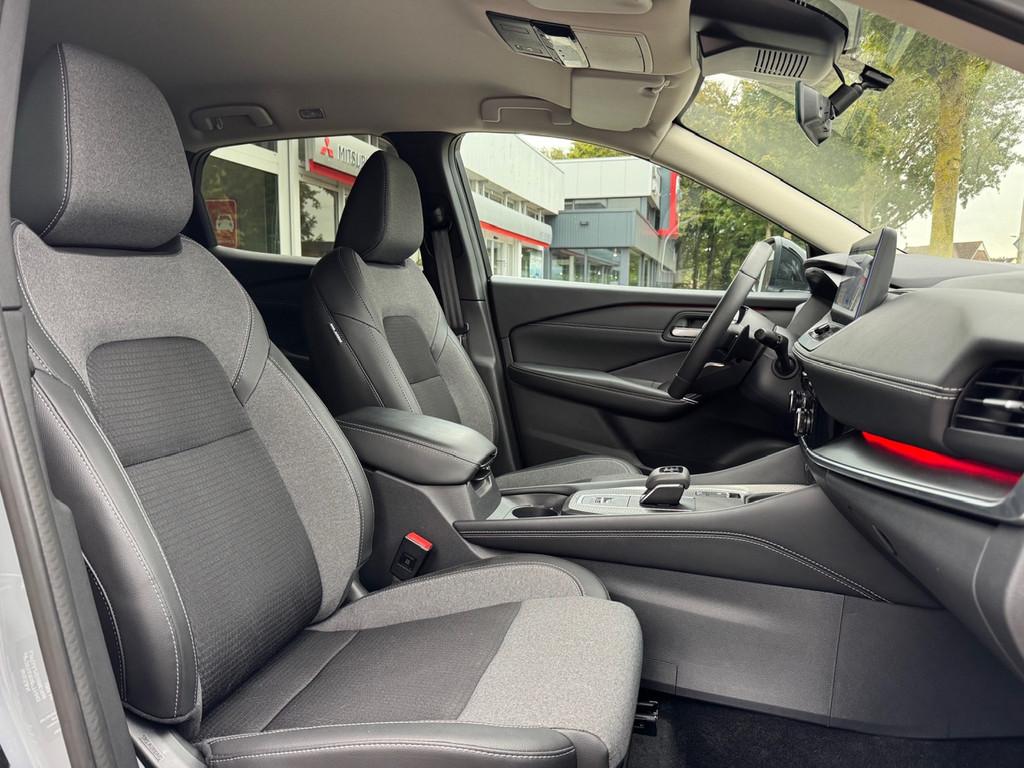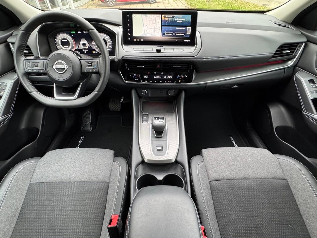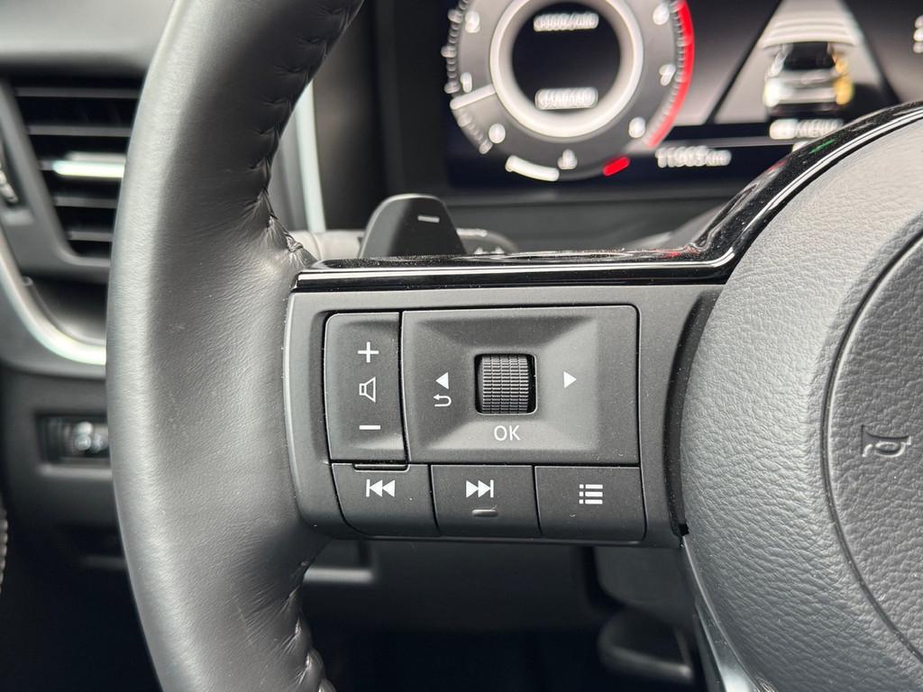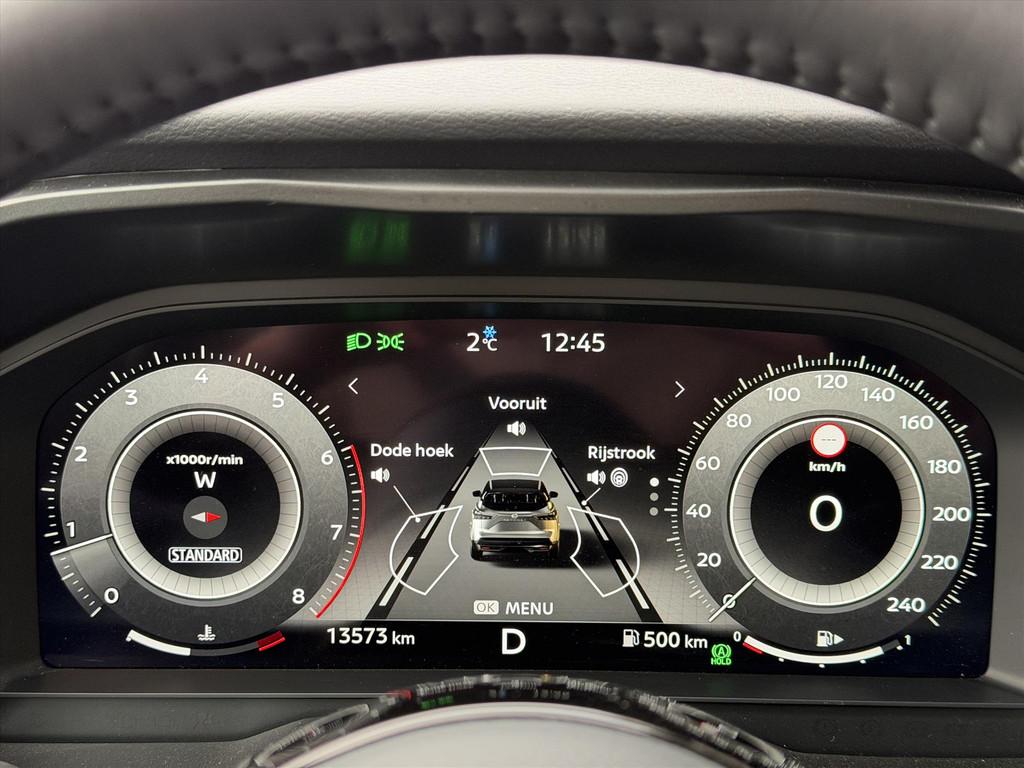 2x USB laadpoorten achter (1x type A, 1x type C), 2x USB laadpoorten voor, 3-punts veiligheidsgordels voor en achter, 9" NissanConnect Navigatie- en infotainmentsysteem, 12,3'' TFT digitaal instrumentenpaneel, 12V aansluitingen voor en in de bagageruimte, 18" Diamant-Cut lichtmetalen velgen, A-IVC Navigatie services, A-IVC Remote Control diensten en meldingen (3 jaar gratis), A-IVI NissanConnect Navigatiesysteem (9'' TFT touchscreen), ABS (Anti-blokkeersysteem), Achterbankleuning in delen neerklapbaar (60/40), Achteruitrijcamera met dynamische afstandsmarkering, Adaptive Front Lighting System (AFS), Alarmsysteem, Apple Carplay® & Android Auto® met kabel, Around View Monitor (AVM), Audiosysteem met Apple Carplay® & Android Auto®, USB-aansluiting, stuurwielbediening, 6 luidsprekers, Auto Speed Control Device (ASCD), Auto Speed Limit (ASL), Automatisch dimmende binnenspiegel, Automatisch in- / uitschakelende koplampen, Back-up Collission intervention (BCI), Bandenreparatieset, Bandenspanningscontrolesysteem (TPMS), Bekerhouder achter (2x), Bekerhouder voor (2x), Blind Junction View (BJV), Blind Spot Warning & Intervention (BSW + BSI), Bluetooth® (telefoon en audio), Breakdown call, Buitenspiegelbehuizing en deurgrepen in carrosseriekleur, Buitenspiegels elektrisch inklapbaar, Buitenspiegels elektrisch verstelbaar en verwarmbaar, Centrale deurvergrendeling met afstandsbediening, Chromen raamomlijsting, Chromen sierstrip achterbumper, Chromen strip achterklep, Cross Traffic Alert (CTA), Dakspoiler achter, Dashboard en deurpanelen leder (zwart), Digitale radio-ontvangst (DAB+), Draadloos Apple Carplay®, Drive modus functie (3 modi), Driver Attention Alert (DAA), EBD (Elektronische Remkrachtverdeler), ESP (Electronic Stability Program), Elektrische achterklep, Elektrische lendensteunverstelling bestuurdersstoel (2-way), Elektronische handrem, Elektronische stuurbekrachtiging, Emergency Stop Signal (Autohazard), Extra getint glas (achterste zijruiten en achterruit), Flexibele bagageruimte indeling (2 scheidingsplanken), Frontal Collision Warning (FCW), Full LED koplampen met LED dagrijverlichting en halogeen knipperlicht, Gescheiden automatische airconditioning (2 zones), Gordelspanners en melding voor veiligheidsgordels, Haaienvin-antenne, Haken in de bagageruimte (4 op de bodem, 2 aan de zijkanten), Head up display, High Beam Assist (HBA), Hill Start Assist (HSA), Hill Start Assist + AutoHold functie, Hoedenplank, ISOFIX-bevestigingspunten achter (2x), In hoogte en diepte verstelbaar stuurwiel, In hoogte verstelbare bestuurdersstoel (manueel), In hoogte verstelbare passagiersstoel, Intelligent Cruise Control (ICC), Interieur ambianceverlichting (middenconsole), Interieurlijsten metaallook, LED achterlichten, Lane Departure Warning & Prevention (LDW + LDP), Lane Side Support (LSS), Lichtsensor, Limited Slip Differential (LSD), Matzilver decoratiepaneel achterbumper, Metallic lak, Middenarmsteun achter met 2 bekerhouders, Middenarmsteun vóór met opbergvak, Middenconsole en armsteunen in PVC, Moving Object Detection (MOD), NBAS (Nissan Brake Assist System), Panoramisch glazen dak, Parkeersensoren voor- en achterzijde, Portiergrepen met ontgrendelknop (Easy Access), Predictive Forward Collision Warning (PFCW), Predictive Front Emergency Braking met voetgangers- en fietsersherkenning (P-FEB), ProPILOT, Regensensor, START/STOP-systeem, Schakelflippers achter stuurwiel, Stoffen stoelbekleding (zwart/grijs), Stuurwielbediening, Stuurwiel en versnellingspookknop met leder bekleed, Tankdeksel zonder dop, Traffic Sign Recognition (TSR), Vehicle Dynamic Control (VDC), Verlichting aan beide kanten in de bagageruimte, Verwarmbaar stuurwiel, Verwarmbare voorruit, Verwarmbare voorstoelen, Voor-, zij- en gordijnairbags (uitschakelbare passagiersairbag), Wi-Fi hotspot (betaalde dienst), Zachte kniesteun (PVC), Zonnebrillenhouder in hemelbekleding, Zonnekleppen met make-up spiegel, Zonnekleppen met make-up spiegel, verlicht, eCall, i-Key (openen en sluiten zonder sleutel)