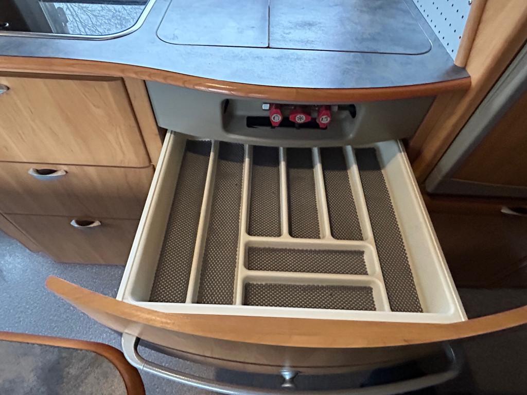 Airbag, Airbag bestuurder, Airco, Alarm, Anti Blokkeer Systeem (ABS), Audioinstallatie met CD-speler, Boordcomputer, Cruise control, Electronic Stability Program (ESP), Elektrische ramen, Extra verlichting, Hoofdsteunen voor, Keukenblok, Luifel, Mistlampen, Radio CD-speler, Startblokkering, Stuurbekrachtiging, Toilet, Verstelbare (in hoogte) bestuurders stoel, Verstelbare stuurkolom, Zonnedak