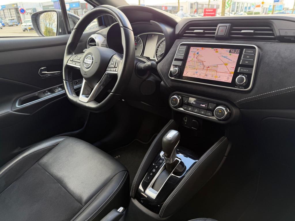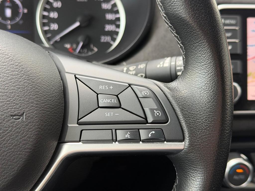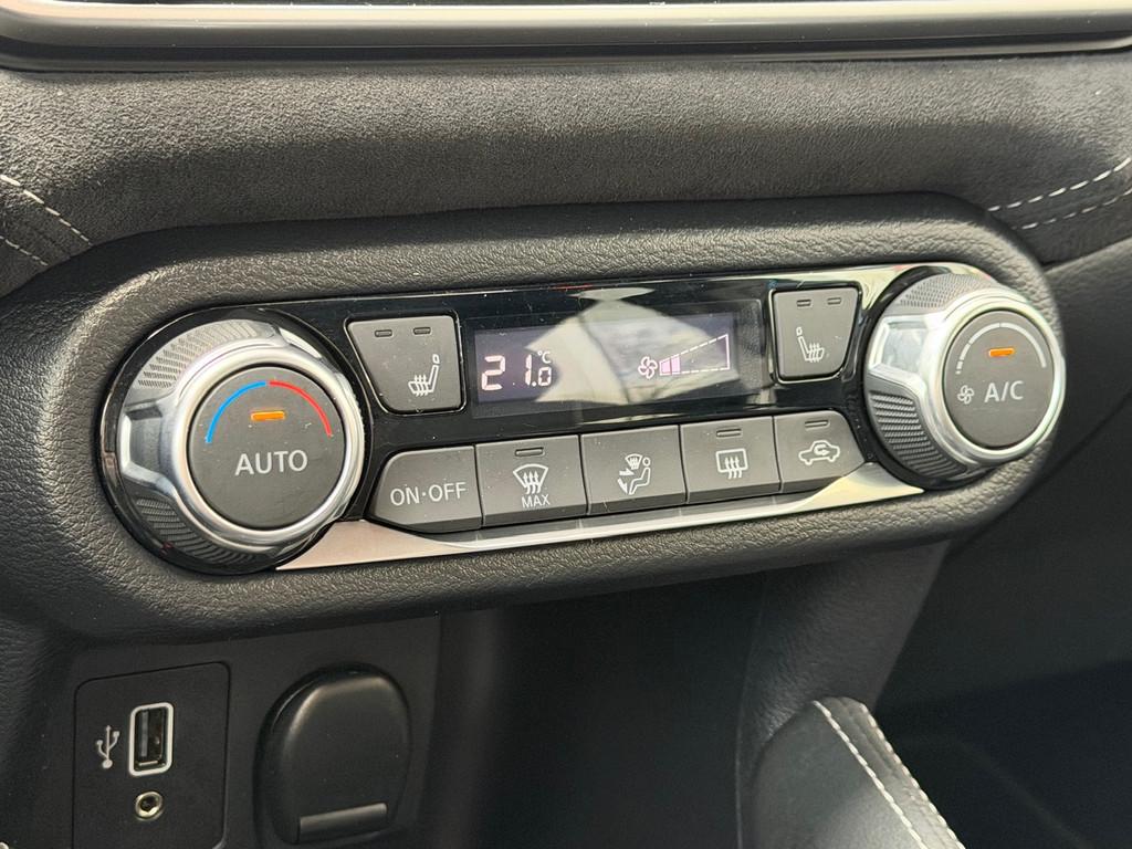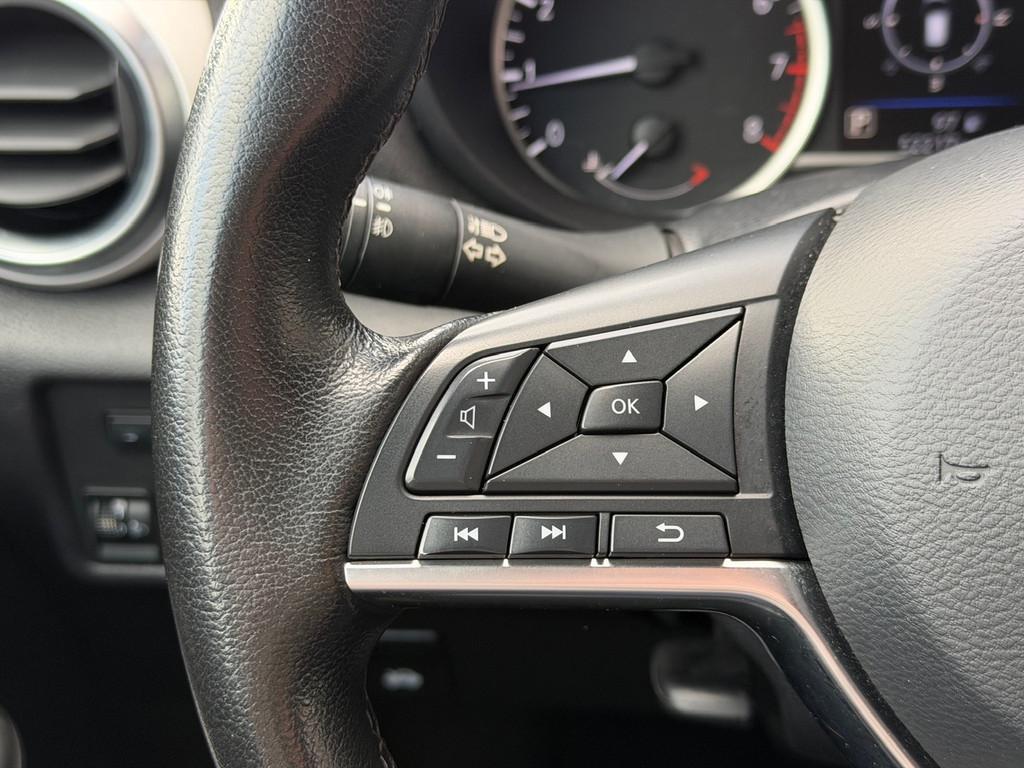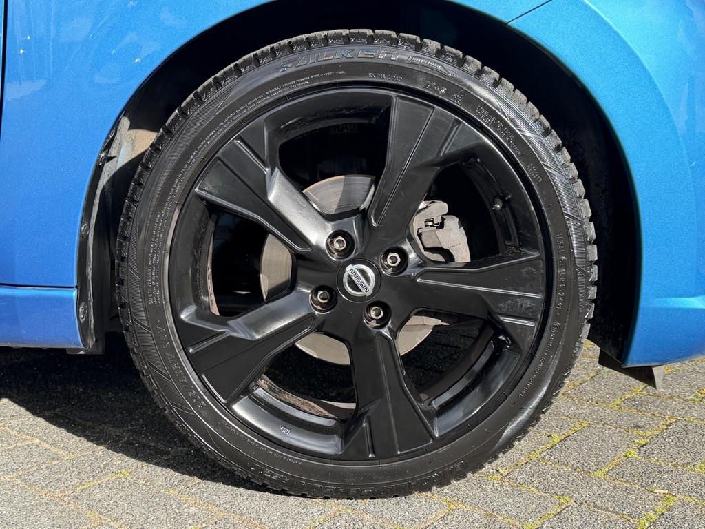 2 hoofdsteunen achter, 3-punts veiligheidsgordels achter (automatische oprolfunctie) (x3), 5'' Kleuren TFT instrumentenpaneel, 12V aansluiting, 17'' Lichtmetalen velgen met Carbon Sport inserts, 60/40 neerklapbare achterbank, ABS (antiblokkeerremsysteem), Achterspoiler, Achteruitrijcamera en parkeersensoren, All season banden, Android Auto, Anti-vermoeidheidsstoelen voor, Apple Car Play, Armsteun voorportieren en dashboard in synthetisch leder, Automatische inschakeling van de ruitenwisser achteraan bij het inschakelen van de achteruitversnelling, Automatisch in-/uitschakelende koplampen, Bandenreparatieset, Bekerhouders (2 voor en 1 achter), Bekleding synthetisch leder/Alcantara 'Carbon Sport', Binnendeurengrepen in chroom, Bovenste deel van het dashboard in soft-touch materialen, Buitenspiegels in carbonlook, Buitenspiegels met geïntegreerde LED-richtingaanwijzers, Centrale deurvergrendeling met afstandsbediening, Chassis Control Systeem (Active Trace Control, Active Ride Control), Cruise Control en snelheidsbegrenzer, Deurgrepen achteraan geïntegreerd in de achterstijl, Deurgrepen vooraan carrosseriekleur, EBD (elektronische remkrachtverdeler), ESP (Electronic Stability Program), Elektrische ruiten vooraan en achteraan, Elektrisch verstelbare buitenspiegels, elektrisch inklapbaar, Frontale airbags (uitschakelbare passagiersairbag), Getint glas, Gordelwaarschuwing, Gordijn airbags, Halogeen koplampen met lichtsignatuur, Handgreep passagierszijde (x1), Handremgreep met leder bekleed, High-Beam assist, Hill start assist, I-key keyless entry/start, ISOFIX kinderstoel bevestigingspunten passagierszijde en achter, In hoogte en diepte verstelbaar stuurwiel, In hoogte verstelbare bestuurdersstoel, Intelligente noodremhulp (AEB), Intelligente noodremhulp (AEB) met voetgangerdetectie, Intelligent key met STOP/START knop, Interieurverlichting en verlichting bedieningsknoppen elektrische ruiten, Kindersloten op de achterportieren, LED-verlichting dashboardkastje, LED dagrijverlichting, LED verlichting, Lane departure warning, Lederen stuurwiel met stiksels, Lederen versnellingspookknop met satijnzilveren afwerking, Manuele airconditioning, Metaalkleur, NBAS (Nissan Brake Assist), NissanConnect navigatie, Opbergbakken in de binnenportieren voor en achter met flessenhouders, Opbergvak op de rugleuning van de passagiersstoel, Schakelindicator, Snelheidsafhankelijke stuurbekrachtiging, Start & Stop systeem, Startonderbreking, Stuurwielbedieningen: boordcomputer, audio, telefoon, snelheidsbegrenzer / cruise control, TPMS (bandenspanning controlesysteem), Traction Control System (TCS), Traffic Sign Recognition, Uitneembare bagage-afdekking, Veiligheidsgordels voor en achter met gordelspanners en spankrachtbegrenzers, Verstelbare hoofdsteunen voor, Verwarmbare voorstoelen, Verwarmde buitenspiegels, Voorbereiding voor radio, Zachte kniesteunen met stiksels, Zijdelingse airbags vooraan, Zonneklep voor bestuurder en passagier met make-up spiegeltje, kofferbakverlichting