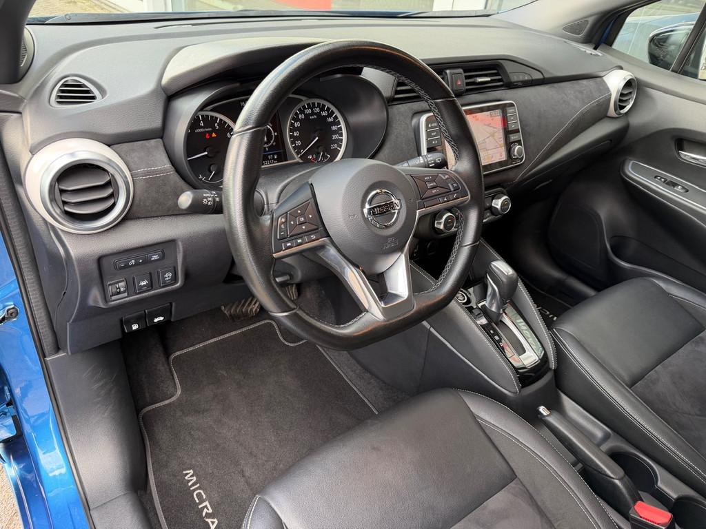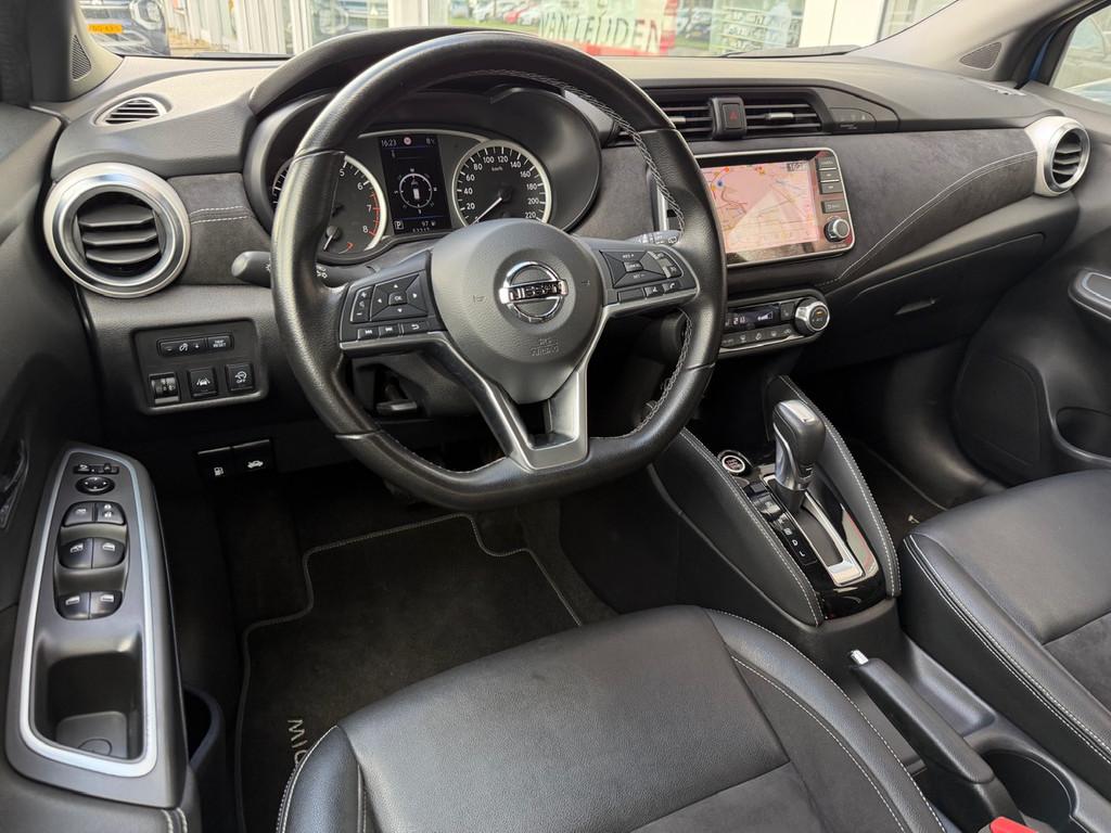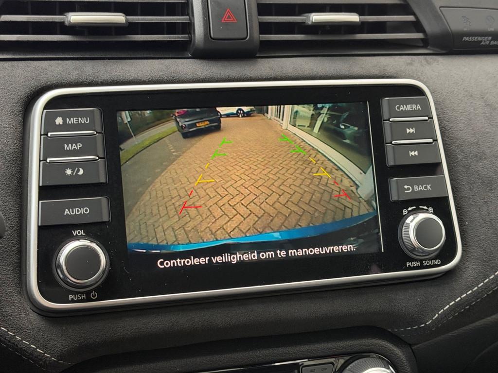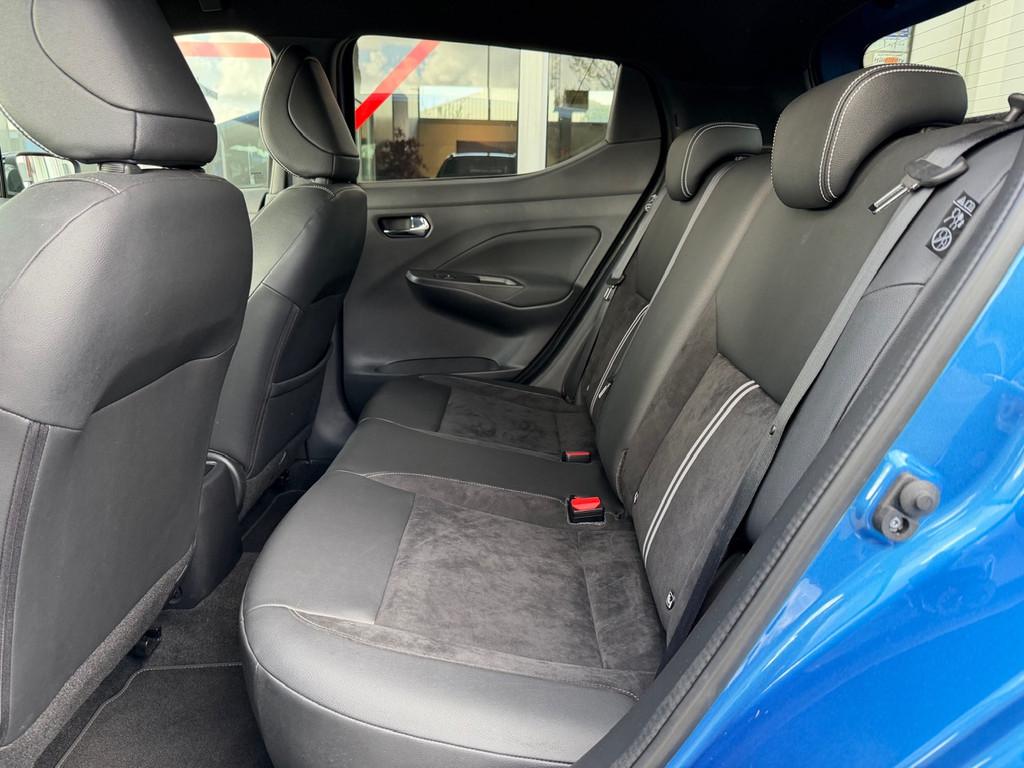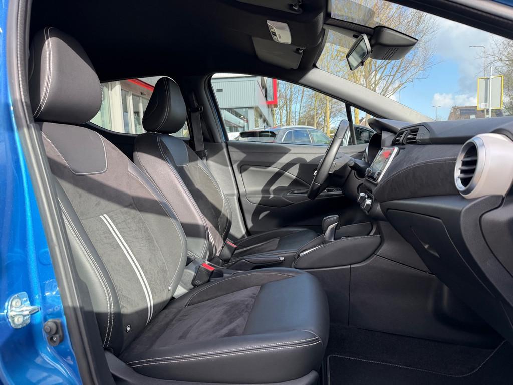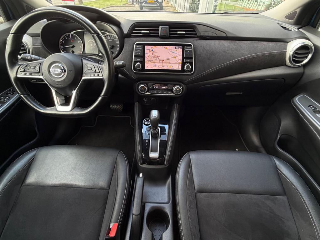 2 hoofdsteunen achter, 3-punts veiligheidsgordels achter (automatische oprolfunctie) (x3), 5'' Kleuren TFT instrumentenpaneel, 12V aansluiting, 17'' Lichtmetalen velgen met Carbon Sport inserts, 60/40 neerklapbare achterbank, ABS (antiblokkeerremsysteem), Achterspoiler, Achteruitrijcamera en parkeersensoren, All season banden, Android Auto, Anti-vermoeidheidsstoelen voor, Apple Car Play, Armsteun voorportieren en dashboard in synthetisch leder, Automatische inschakeling van de ruitenwisser achteraan bij het inschakelen van de achteruitversnelling, Automatisch in-/uitschakelende koplampen, Bandenreparatieset, Bekerhouders (2 voor en 1 achter), Bekleding synthetisch leder/Alcantara 'Carbon Sport', Binnendeurengrepen in chroom, Bovenste deel van het dashboard in soft-touch materialen, Buitenspiegels in carbonlook, Buitenspiegels met geïntegreerde LED-richtingaanwijzers, Centrale deurvergrendeling met afstandsbediening, Chassis Control Systeem (Active Trace Control, Active Ride Control), Cruise Control en snelheidsbegrenzer, Deurgrepen achteraan geïntegreerd in de achterstijl, Deurgrepen vooraan carrosseriekleur, EBD (elektronische remkrachtverdeler), ESP (Electronic Stability Program), Elektrische ruiten vooraan en achteraan, Elektrisch verstelbare buitenspiegels, elektrisch inklapbaar, Frontale airbags (uitschakelbare passagiersairbag), Getint glas, Gordelwaarschuwing, Gordijn airbags, Halogeen koplampen met lichtsignatuur, Handgreep passagierszijde (x1), Handremgreep met leder bekleed, High-Beam assist, Hill start assist, I-key keyless entry/start, ISOFIX kinderstoel bevestigingspunten passagierszijde en achter, In hoogte en diepte verstelbaar stuurwiel, In hoogte verstelbare bestuurdersstoel, Intelligente noodremhulp (AEB), Intelligente noodremhulp (AEB) met voetgangerdetectie, Intelligent key met STOP/START knop, Interieurverlichting en verlichting bedieningsknoppen elektrische ruiten, Kindersloten op de achterportieren, LED-verlichting dashboardkastje, LED dagrijverlichting, LED verlichting, Lane departure warning, Lederen stuurwiel met stiksels, Lederen versnellingspookknop met satijnzilveren afwerking, Manuele airconditioning, Metaalkleur, NBAS (Nissan Brake Assist), NissanConnect navigatie, Opbergbakken in de binnenportieren voor en achter met flessenhouders, Opbergvak op de rugleuning van de passagiersstoel, Schakelindicator, Snelheidsafhankelijke stuurbekrachtiging, Start & Stop systeem, Startonderbreking, Stuurwielbedieningen: boordcomputer, audio, telefoon, snelheidsbegrenzer / cruise control, TPMS (bandenspanning controlesysteem), Traction Control System (TCS), Traffic Sign Recognition, Uitneembare bagage-afdekking, Veiligheidsgordels voor en achter met gordelspanners en spankrachtbegrenzers, Verstelbare hoofdsteunen voor, Verwarmbare voorstoelen, Verwarmde buitenspiegels, Voorbereiding voor radio, Zachte kniesteunen met stiksels, Zijdelingse airbags vooraan, Zonneklep voor bestuurder en passagier met make-up spiegeltje, kofferbakverlichting