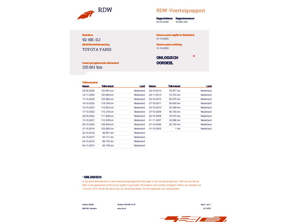 Mileage 120.661 NAP checked