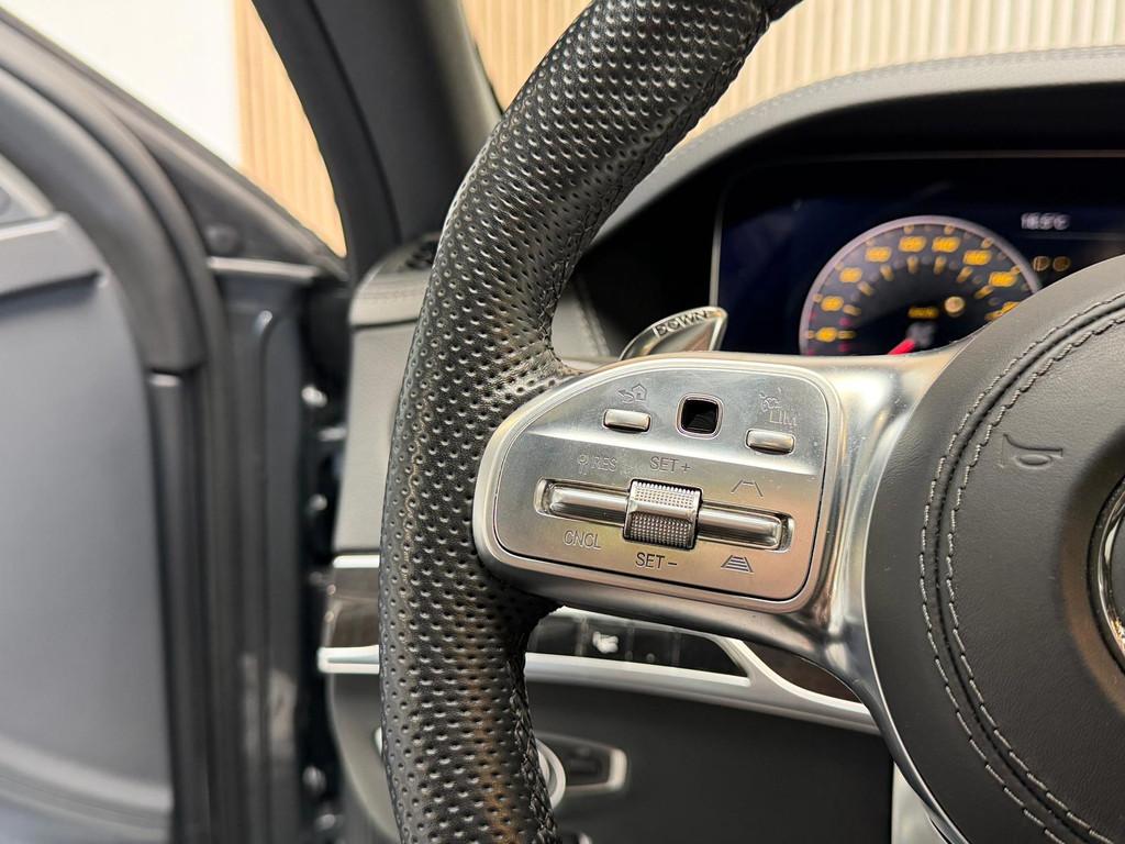 "Lichtmetalen velgen 18""", "Lichtmetalen velgen 20""", AMG-styling, AMG Line Plus, Achteropkomend verkeer waarschuwing, Achteruitrijcamera, Airbag(s) hoofd achter, Airbag(s) hoofd voor, Airbag(s) side voor, Airbag bestuurder, Airbag passagier, Anti Blokkeer Systeem (ABS), Audio installatie high-end, Audio installatie premium, Autotelefoonvoorbereiding met Bluetooth, Buitenspiegels elektrisch inklapbaar, Buitenspiegels elektrisch met geheugen, Cruise control adaptief met Stop&Go, Dodehoek detector, Draadloze telefoonlader, Electronic climate controle, Elektrisch verstelbare stoel(en) met geheugen, Elektrisch verstelbare stuurkolom met geheugen, Entertainment system, Extra getint glas, Geluidwerend glas, Head-up display, Houtafwerking interieur, Keyless entry, Kruisend verkeer detectie, LED koplampen, Lederen stuurwiel, Luchtvering, Luxe lederen bekleding, Metallic lak, Navigatie-systeem full map + hard disk, Panoramadak, Parkeer-assistent, Parkeersensor achter, Parkeersensor voor, Regensensor, Rijstrooksensor met correctie, Rondomzicht camera, Sportstoelen, Sportstuur, Startblokkering, Stoel ventilatie voor, Telefoonintegratie premium, Verwarmde voorstoelen, Virtual Cockpit, Voorstoel(en) met massagefunctie, Zwart dakhemel, zijwind assistent